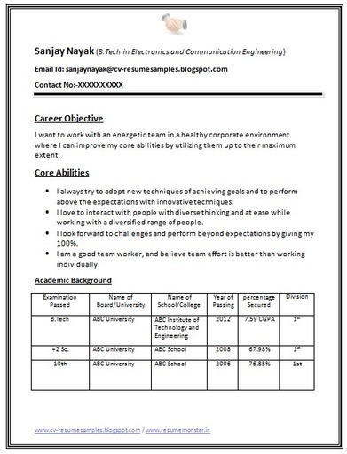 Over 10000 CV and Resume Samples with Free Download: B Tech ECE ...