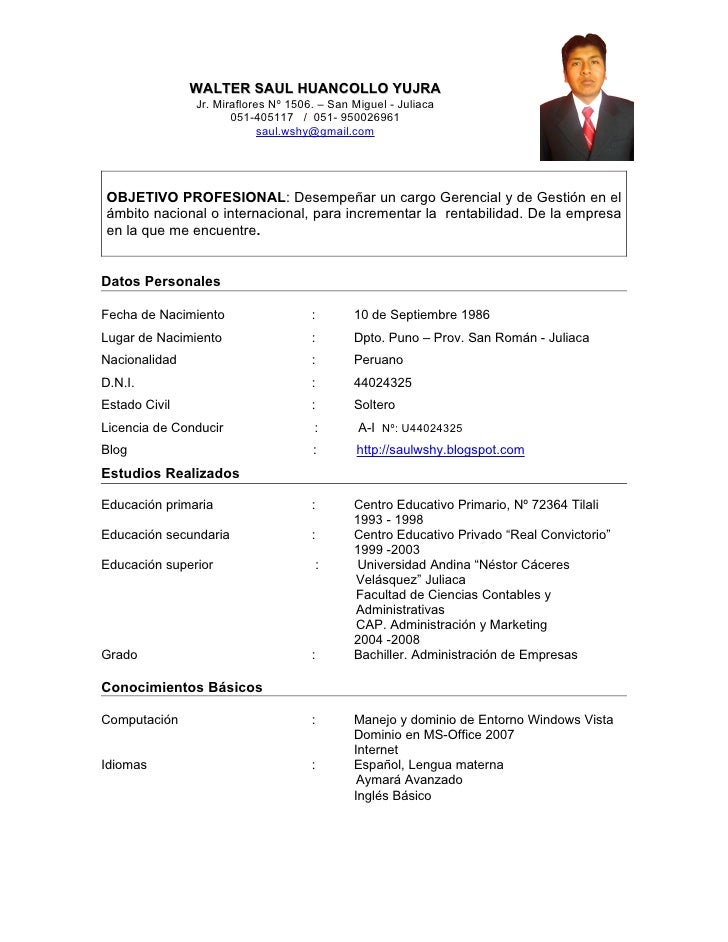 Curriculum Vitae Walter Saul Huancollo Yujra