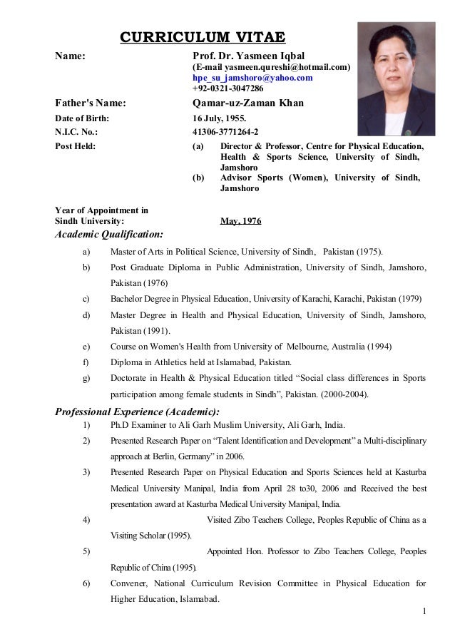 Sample Curriculum Vitae Professor | Resume / Curriculum Vitae Format